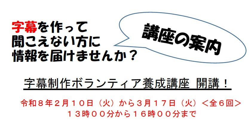 聴覚障害者の情報保障のひとつである「字幕」の制作を行うボランティアを養成する講座です。